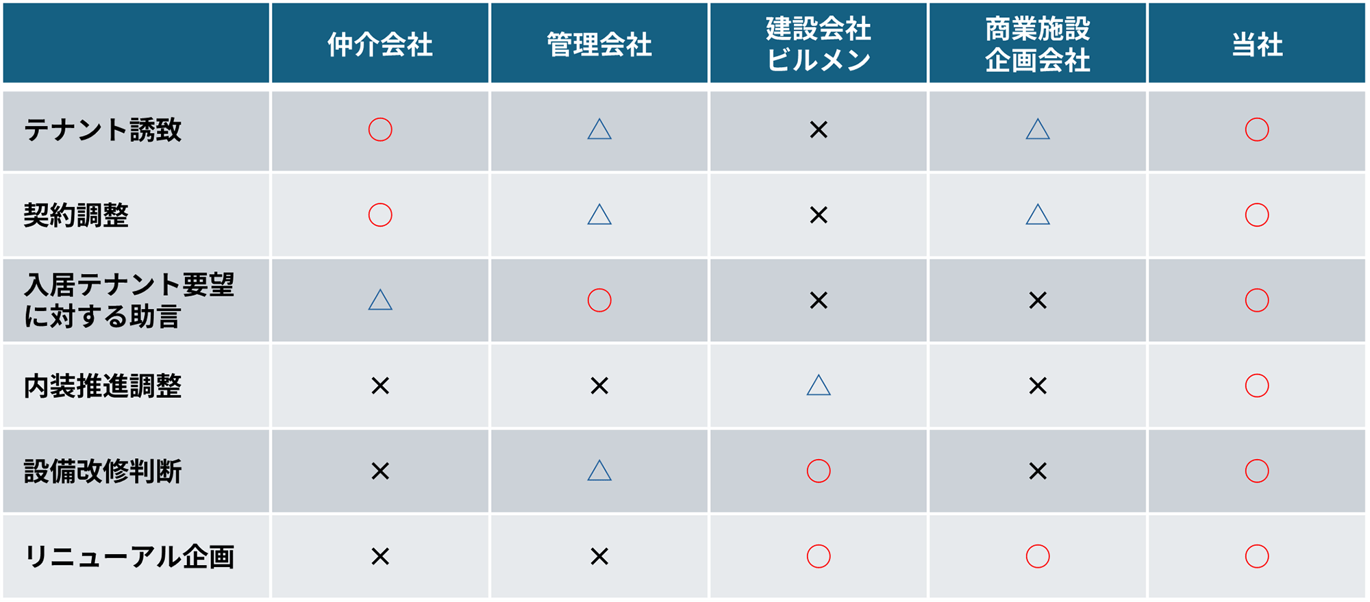 商業不動産においては、オーナーとしてテナント誘致、契約調整、テナント要望への対応等のソフト面から原状回復工事、設備改修等のハード面まで、多様な判断が求められる場面が多くあります。